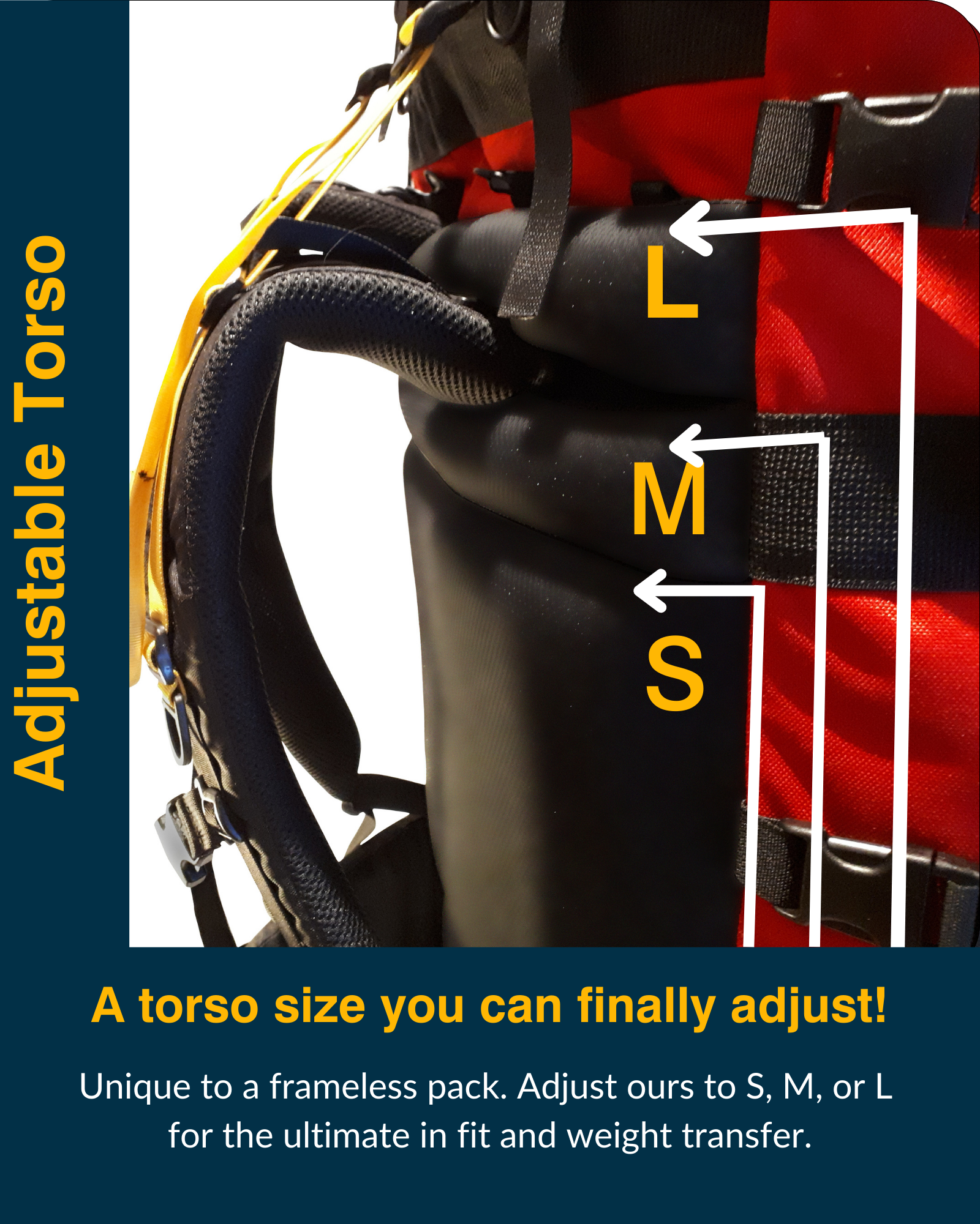 - and the first to offer custom-fit … because carrying 50+ lbs in a one-size-fits-all pack is unnecessarily painful.